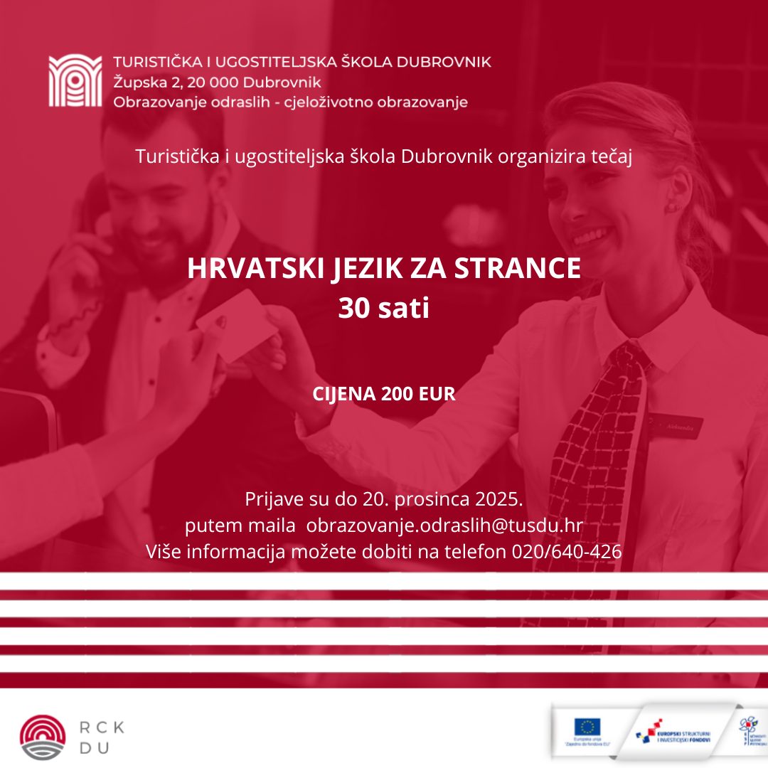 HRVATSKI JEZIK ZA STRANCE 30 sati Cijena 200 € Prijave do 20. prosinca 2025.